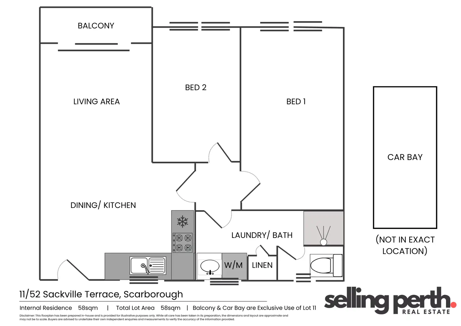 • Internal Area: 58 sqm