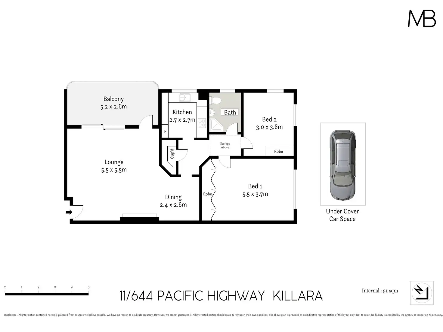 2 Bed • 1 Bath • 1 Car • 91m²