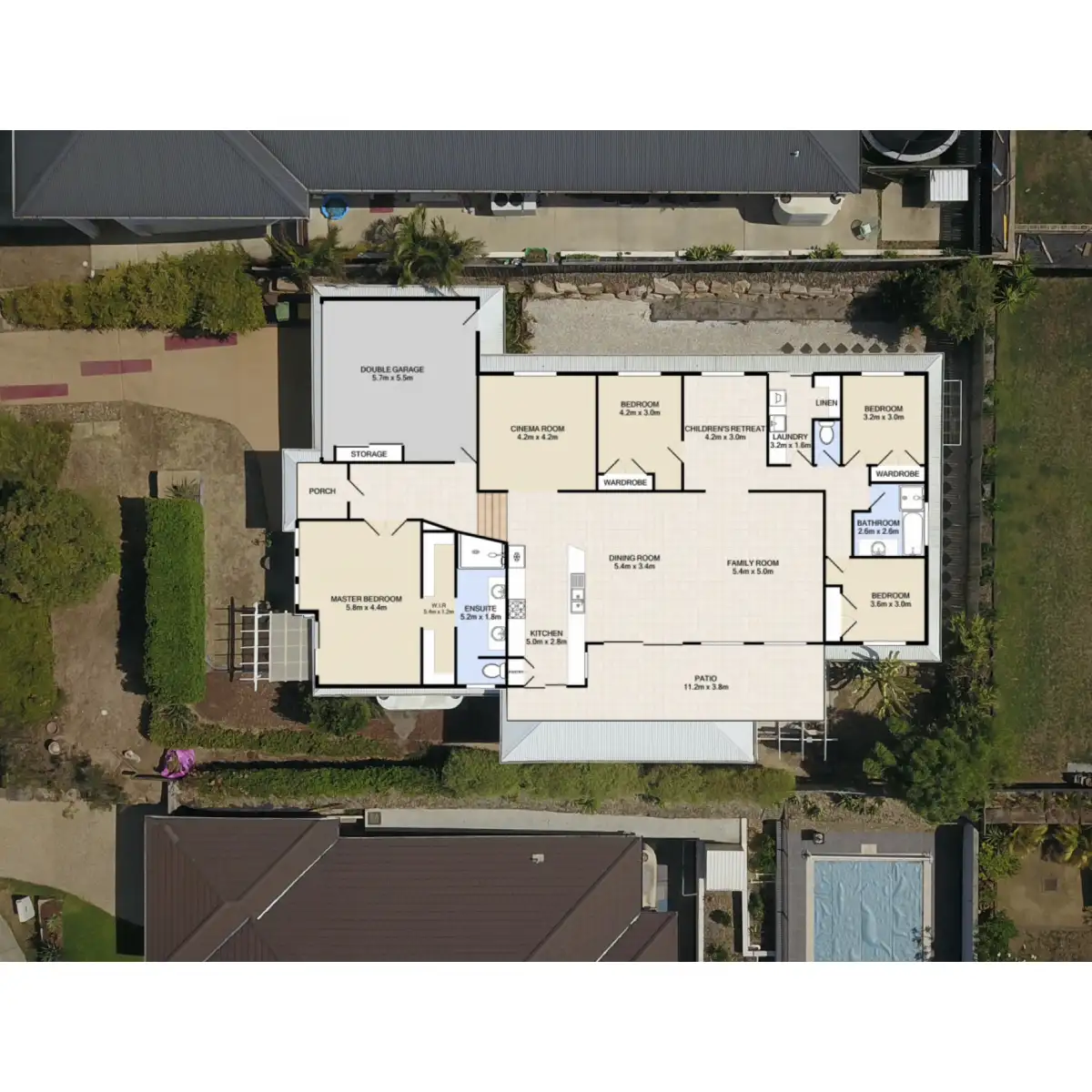 The media room is off the family area, air conditioning flows from the large unit in the casual lounge, feature walls and additional mood lighting installed.
