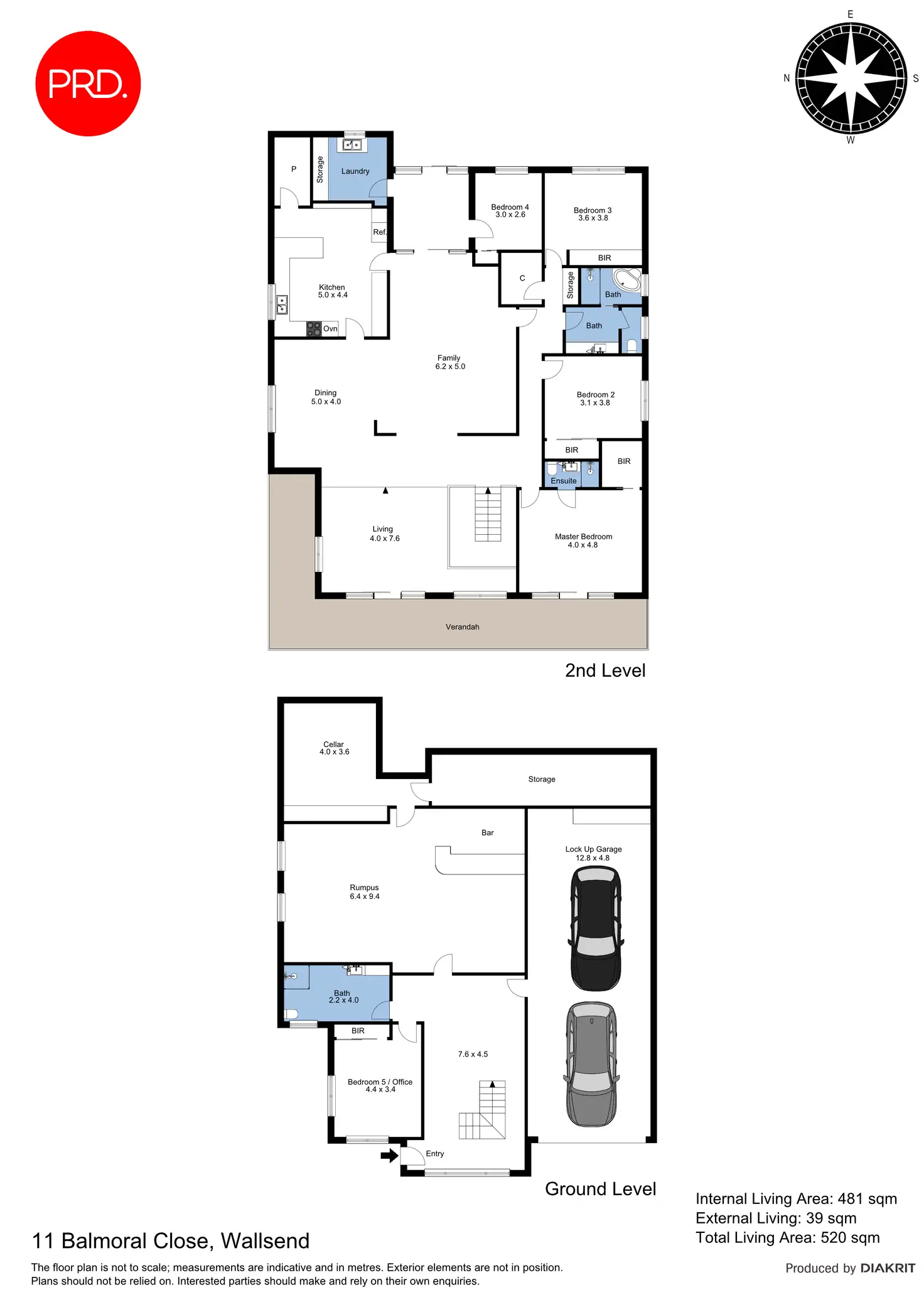 - 5 generous sized bedrooms, 3 bathrooms, full laundry with extra toilet