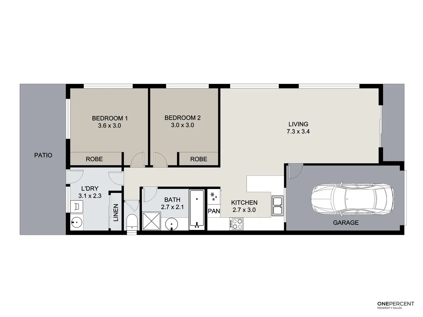 2 Bed • 1 Bath • 1 Car • 300m²