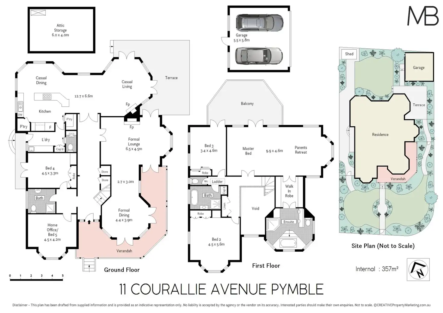 Five oversized bedrooms, built in robes, expansive parents’ retreat opening to a large balcony, and including a sitting room, dressing room and luxurious marble ensuite