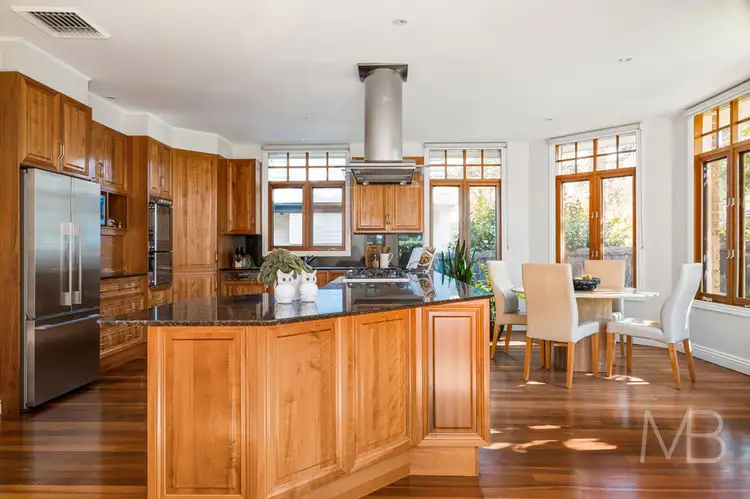 Family-sized timber and granite kitchen, vast island breakfast bar with two-way storage, six-burner Ilve gas cooktop, two St George ovens, Miele dishwasher and range hood