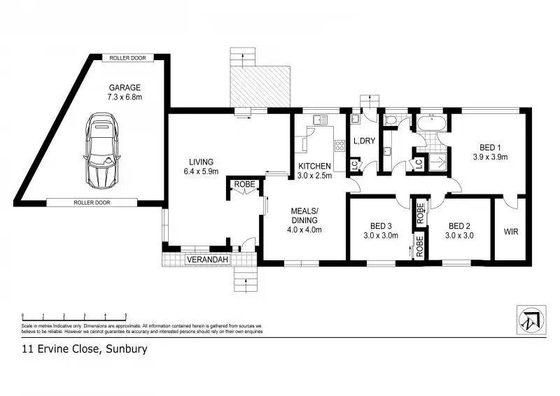 3 Bed • 1 Bath • 2 Car • 721m²