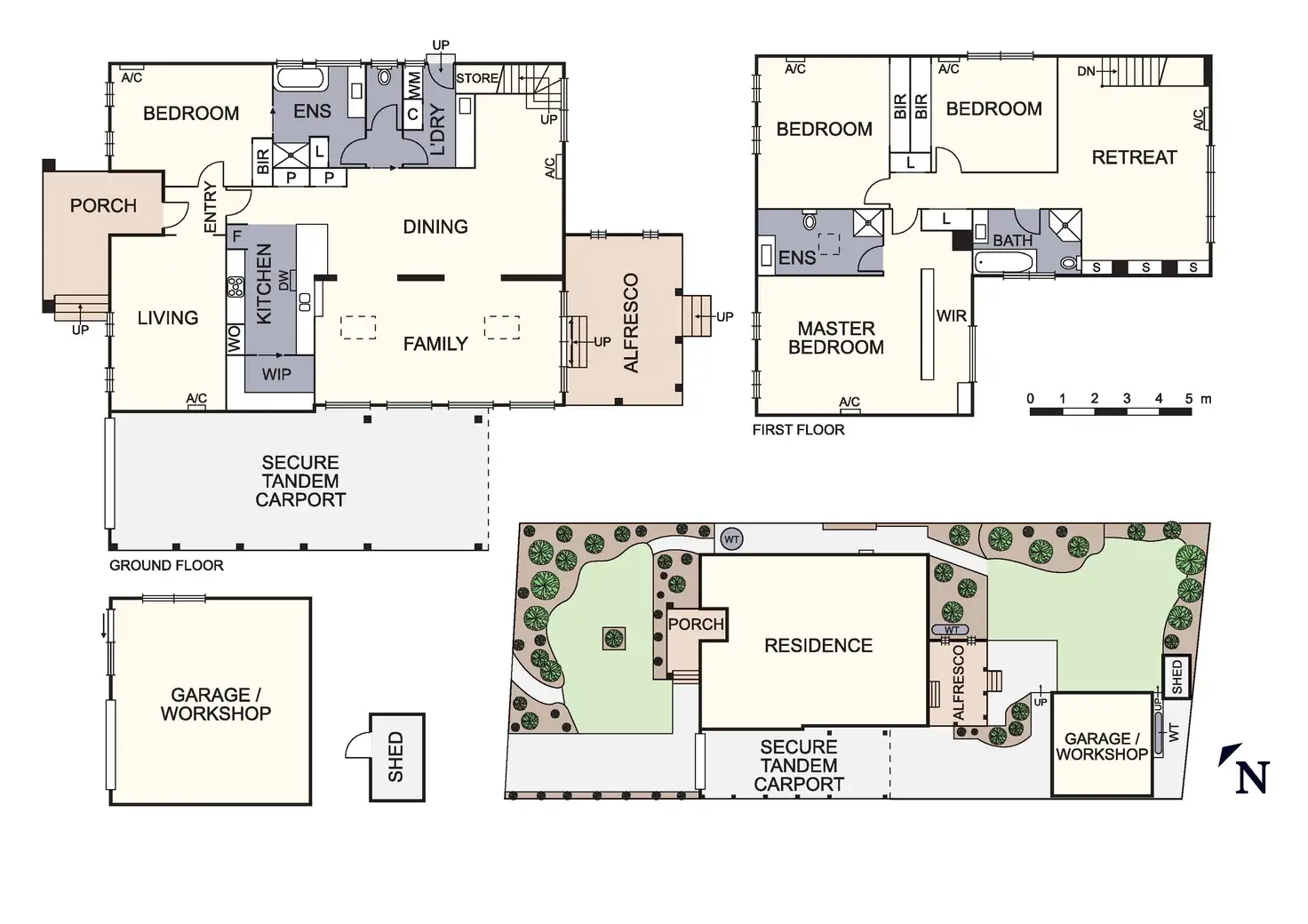 Upstairs presents a fully customised home entertainment zone with built in shelving and plenty of space for comfortable living with the added bonus of glorious hill views. It also comprises the main accommodation zone with two robed bedrooms, a modern family bathroom and a sumptuous master retreat with huge walk in robe and stunning ensuite.