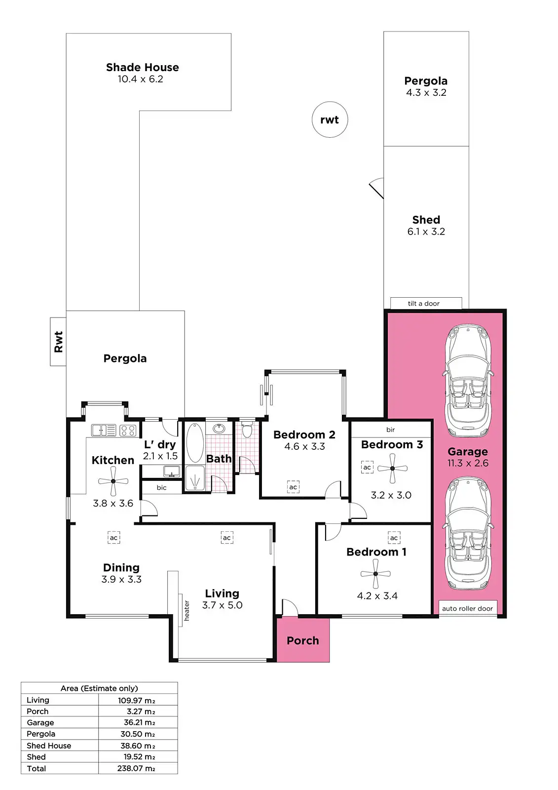 3 Bed • 1 Bath • 3 Car • 600m²
