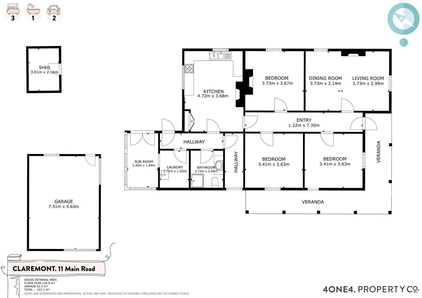 3 Bed • 1 Bath • 3 Car • 1079m²