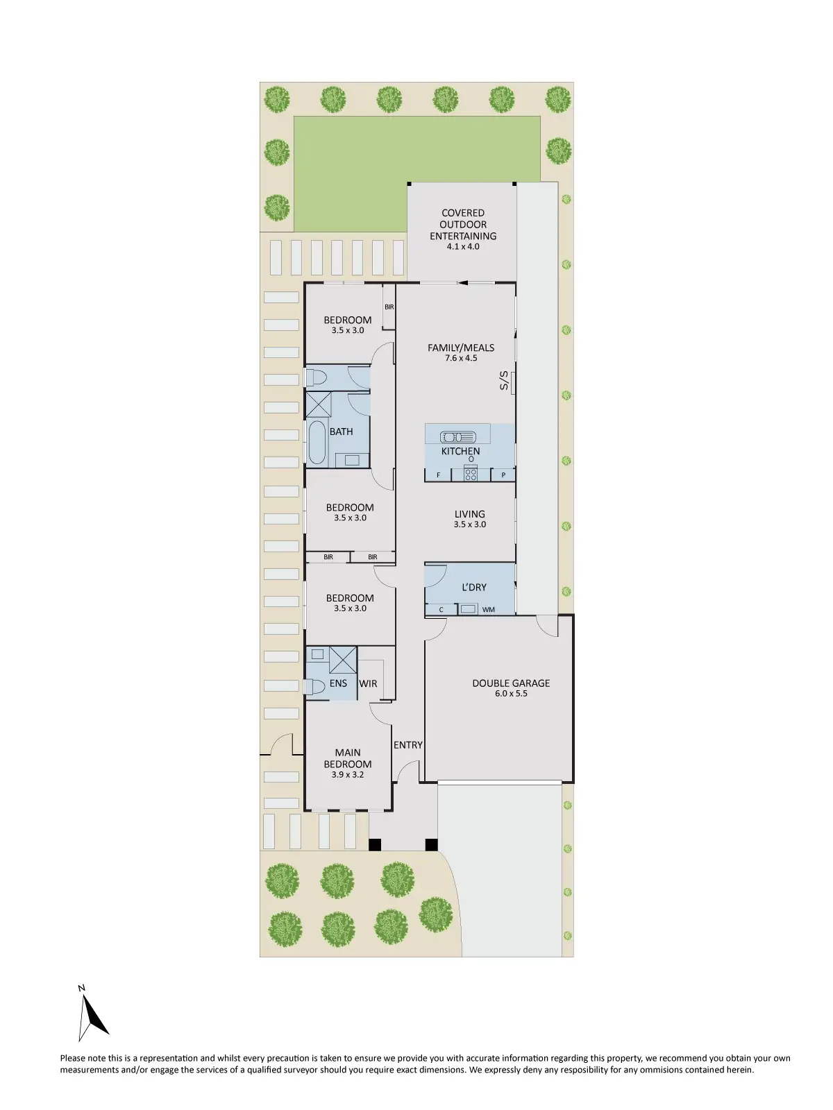 The main bedroom, located at the front of the house features ensuite and walk in robe. The additional three bedrooms share the family and guest bathroom, complete with bath, shower, vanity basin and separate toilet. The laundry with exterior door leads to the side of the house, complete with concrete paths, clothes line and garage passage way access.