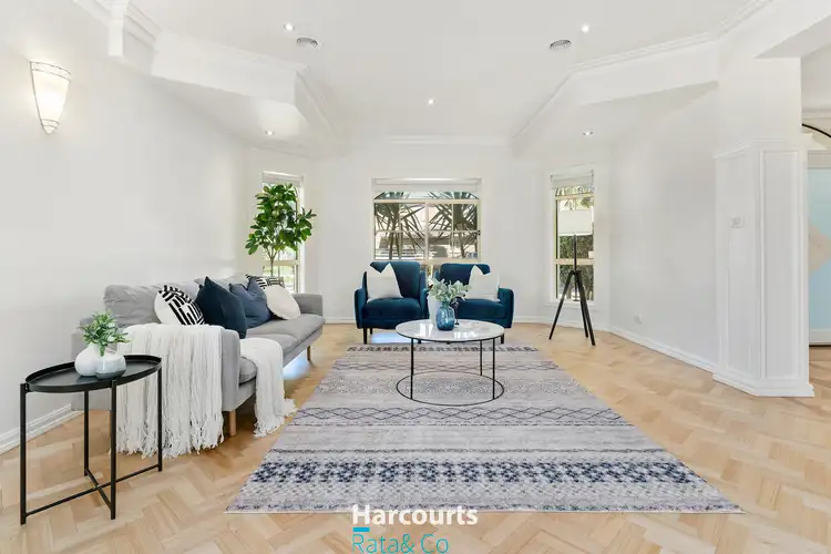 Nestled in one of Epping's most desired pockets, with its close proximity to some of Epping and South Morang's best amenities including parks, schools, shops, public transport and other recreational facilities. Just minutes away from Westfield Plenty Valley, Pacific Epping, DPV Medical centre, Northern Hospital, South Morang and Epping Train Station, Mill Park Secondary College, Meadow Glen Primary School, Meadow Glen Athletics Track and Kalman Park. This sprawling double story home offers Herringbone Parquetry floors throughout and multiple large living zones with detailed moulding on the walls and ceilings. Offering a flexible floorplan with an expansive formal lounge and dining room. A well proportioned meals and living area accompany a large well appointed kitchen with ample storage, large island bench and Smeg appliances. Following on from the kitchen is a large laundry with laundry chute and access to the double car garage and additional rear carport. The backyard offers manicured gardens with mature fruit trees and hedges as well as a decking space and separate undercover alfresco area with outdoor kitchen with BBQ, built in seating with storage and powder room, perfect for entertaining guests. The second floor comprises of three robed bedrooms which are all serviced by a tiled bathroom that features a large shower and spa bath. In addition, an oversized master bedroom offers a spacious walk in robe, brand new tiled ensuite and balcony. The second floor also offers a study space and a private retreat that could be converted into a fifth bedroom.