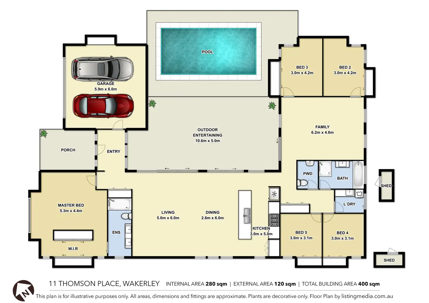 Catered to the ever evolving family this home offers five generous sized bedrooms, including the master suite with sitting area, walk in wardrobe and ensuite. The open plan living area incorporates the dining area, family living area and sleek designer kitchen complete with 900mm Smeg oven and 6 burner gas stainless steel cooktop, ample storage and Caeser stone benchtops. The family bathroom, laundry and formal lounge room/media room completes this stylish family home with ducted zoned air-conditioning ensuring comfort and well-being year round.