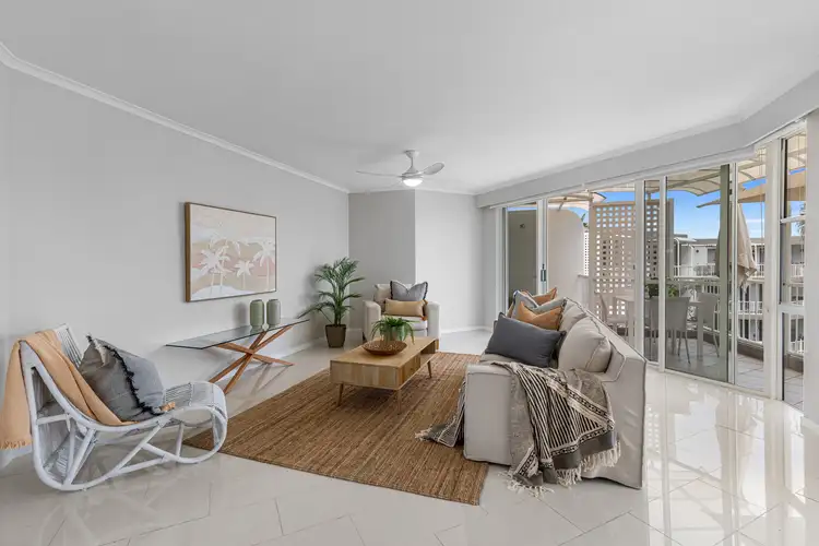 Step into this light filled top floor apartment in Marina's Village, located within the tranquil quays of Runaway Bay. Offering a spacious open plan, modern design and abundant natural light creates an inviting atmosphere. This three bedroom, two bathroom apartment offers waterfront living, where comfort and style meet in perfect harmony.