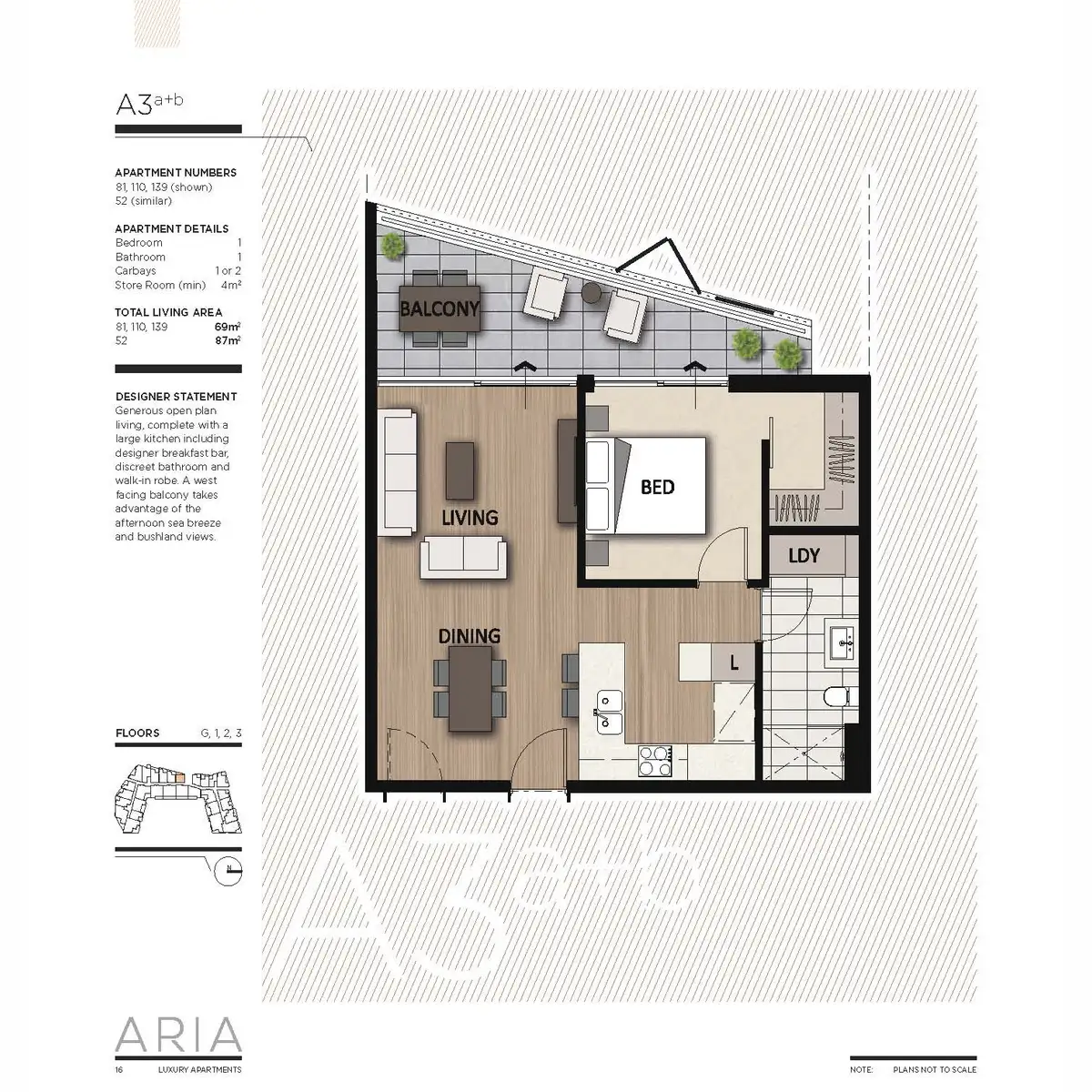 With breathtaking architecture, a stunning concierge lobby, and an expansive resort-style pool, Aria brings the ambiance of a five-star resort to your private residence. Nestled alongside the prestigious Cottesloe Golf Course and the green playing fields of Swanbourne Primary School, Aria is centrally located in Perth's aspirational western suburbs. The spacious balconies offer views of the Perth CBD to the east and the sounds of the Indian Ocean to the west.