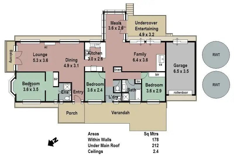 A slow combustion heater together with a split system air conditioner create the perfect seasonal shield, while slate and vinyl flooring through the kitchen, family and meals area place a family-friendly finish on the design.