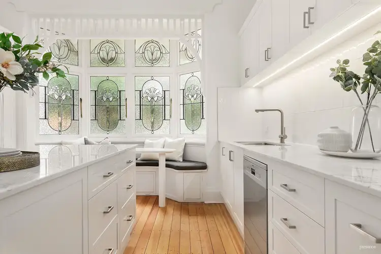 Meticulously renovated with a sympathetic touch, this home seamlessly blends the charm of yesteryear with the comforts of the 21st century. Now featuring five bedrooms and four bathrooms, it offers ample space for the entire family to thrive. The formal lounge and dining rooms exude grandeur and provide an ideal setting for hosting unforgettable gatherings, while the contemporary new eat-in kitchen effortlessly marries style and functionality.
