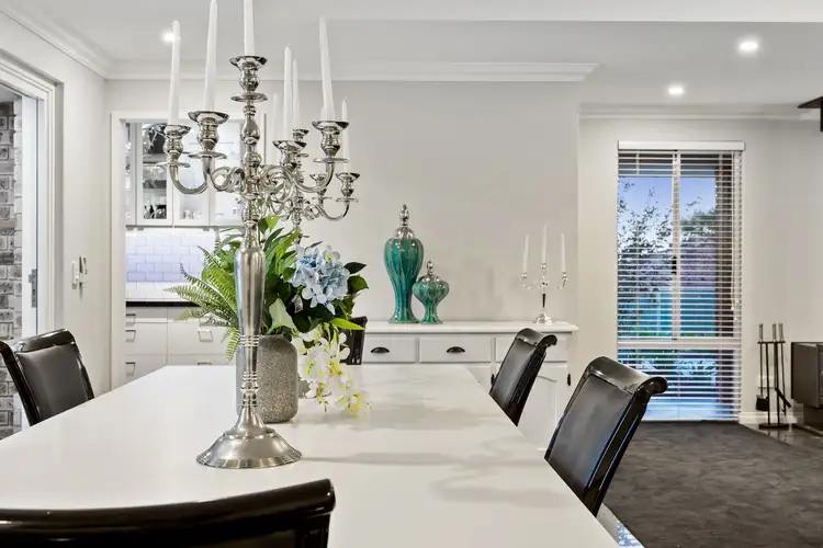 The full width French Doors cascade you outside to the generous gabled Alfresco. With beautifully manicured gardens front and back, standard roses, hedges and grassed areas for the children to play. You'll enjoy many a balmy night under the gabled patio or under the African Thatch hut, perfect for any family get-together.