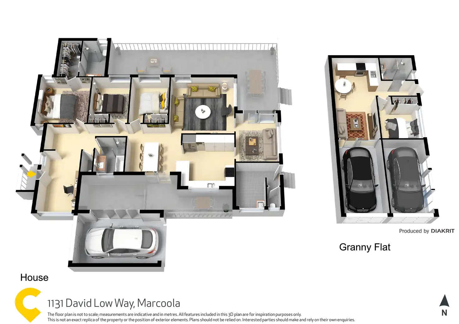 - Three bedrooms plus separate granny flat