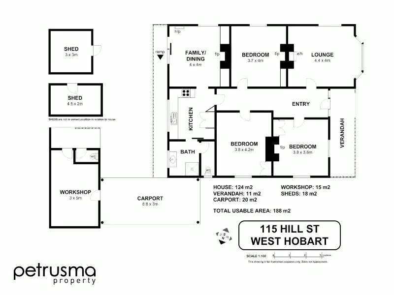 3 Bed • 1 Bath • 1 Car • 624m²