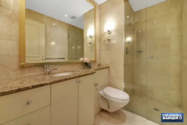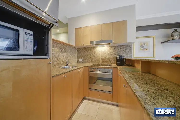 The apartment itself is a mixture of carpet and tiles and its clever flow through design makes the most of its space and features. The kitchen has stainless steel smeg appliances and granite bench tops. There is a masterfully concealed microwave and fridge as well as an integrated dishwasher. The marble bathroom has a shower, and again a cleverly concealed laundry.