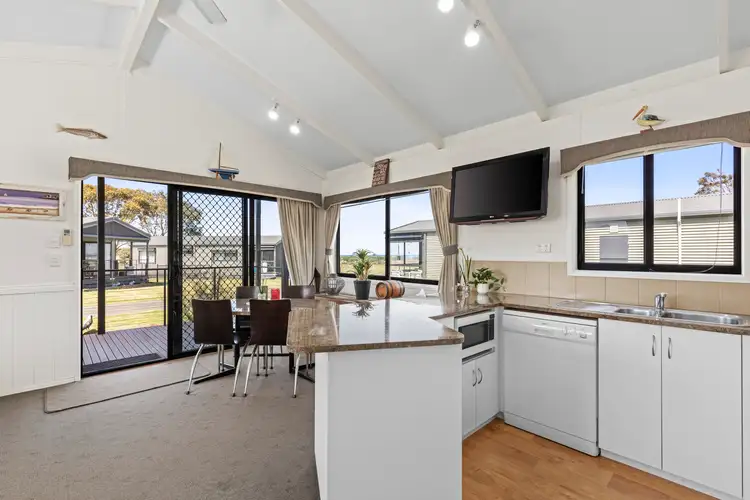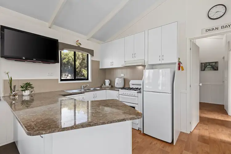 Enjoy stunning views of Swan Bay from this perfect retreat set within the relaxed Swan Bay Holidays community. Featuring three bedrooms with built-in storage and fans for comfort, plus air-conditioning to the master bedroom. The carpeted living and dining area boasts high ceilings, and air-conditioning, flowing from a covered timber deck with water views.