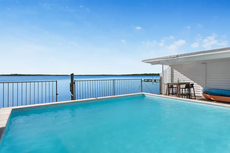 “Absolute waterfront home; lakeside pool and cabin”