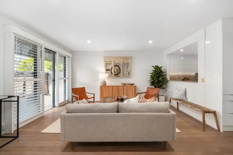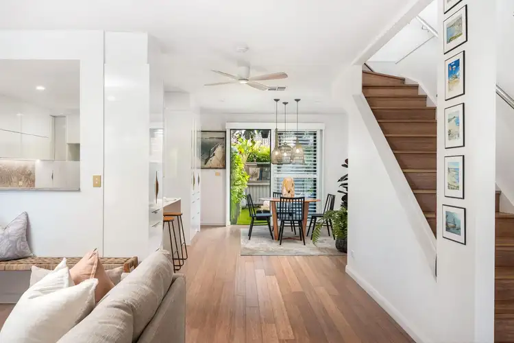 Inside, the living and dining area is open and airy offering a real sense of space. Whether you're entertaining or unwinding, you'll love the seamless connection to two separate courtyards. The newly renovated kitchen is a standout with its abundance of storage and quality appliances, while the updated laundry and powder room are discreetly tucked away. Upstairs, three robed bedrooms, two bathrooms, and two balconies give you plenty of room to retreat to your own peaceful corner. Parking is a breeze with a single garage and an additional car space on title.