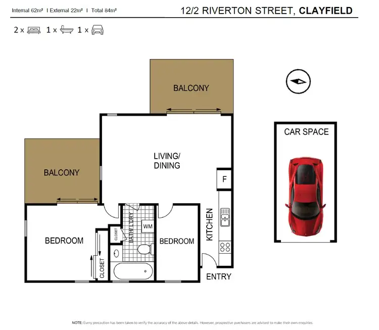 2 Bed • 1 Bath • 1 Car • 84m²