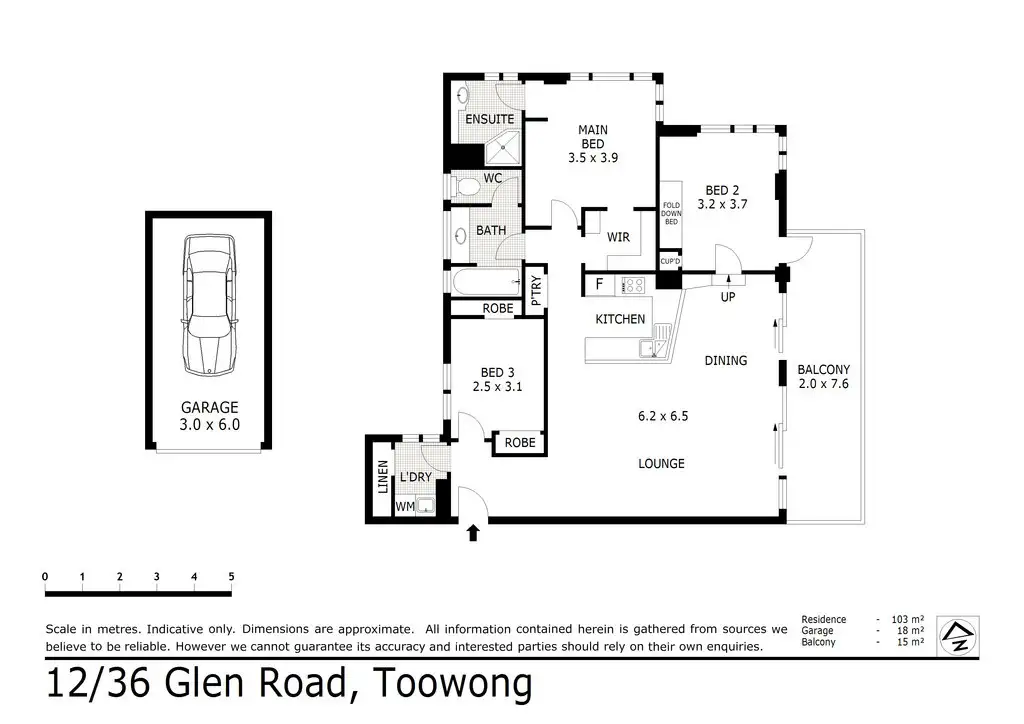 Spacious (124m2) 3 bedroom, 2 bathroom, 1 car 4th floor apartment with absolute river frontage enjoying stunning city and and river views.