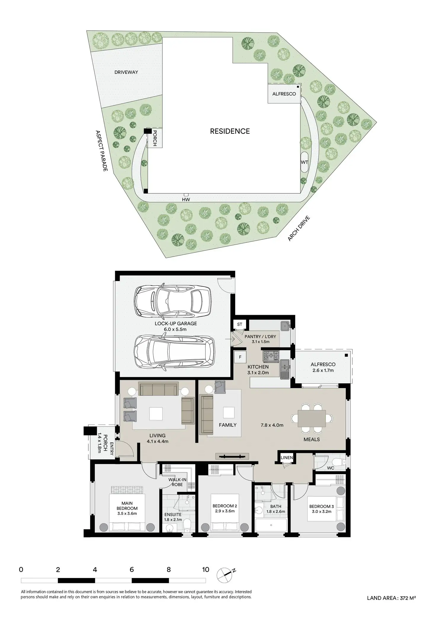 • The light-filled formal living area at the front of the home is bathed in natural light, offering a tranquil space to relax while enjoying views over the landscaped front yard.