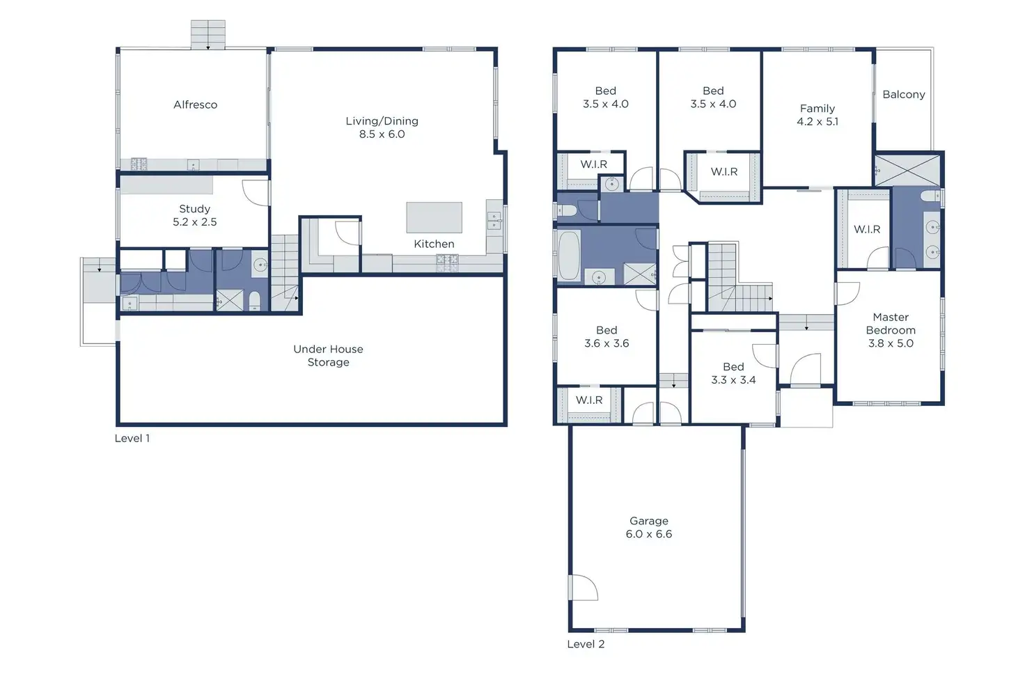 The master bedroom gives parents their own private retreat, featuring a walk-in robe and a deluxe oversized ensuite with rain shower and dual stone-topped vanity. Four additional robed bedrooms (three with walk-in robes) share an equally modern bathroom with a freestanding bathtub, rain shower and stone-topped vanity with terrific storage.
