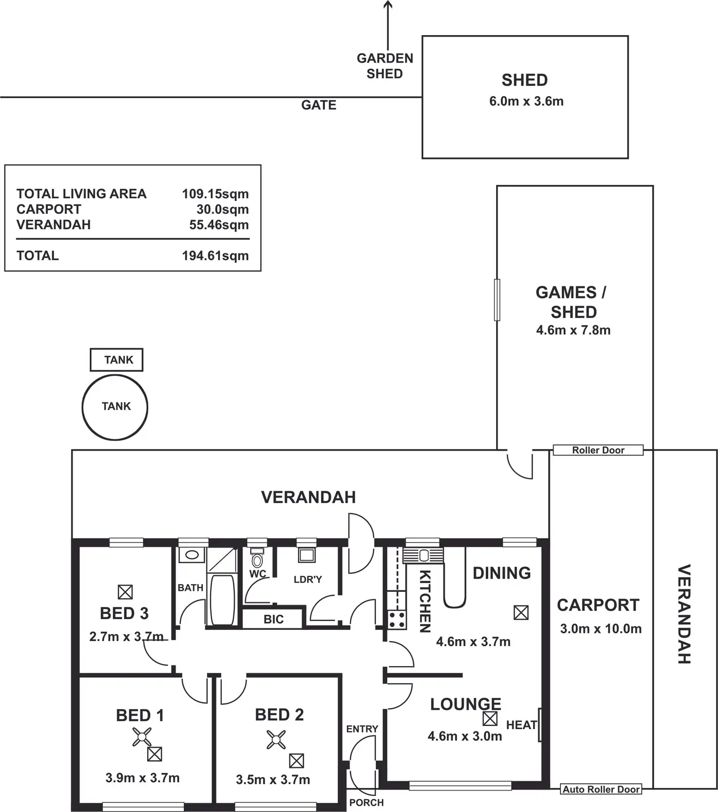 3 Bed • 1 Bath • 3 Car • 863m²