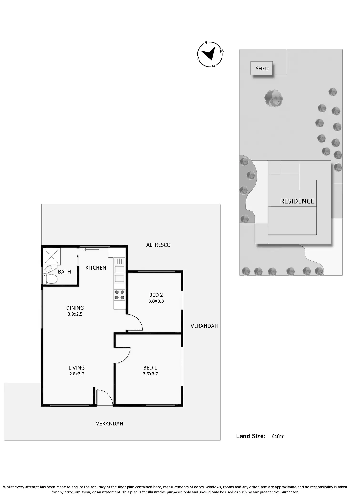 2 Bed • 1 Bath • 1 Car • 646m²