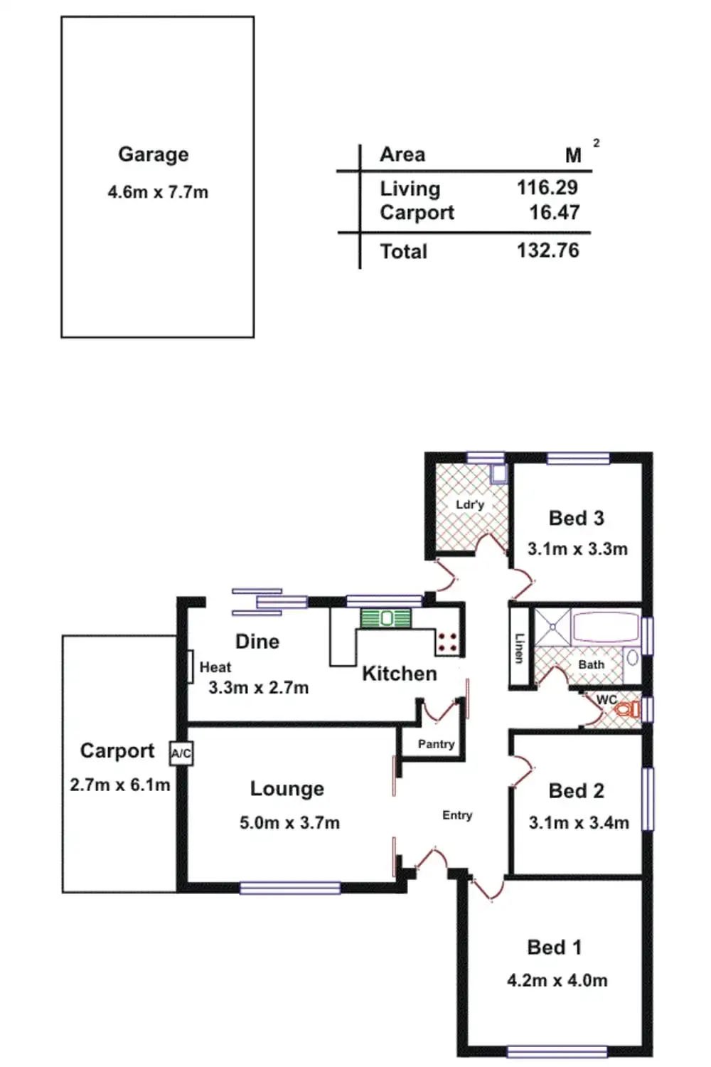 3 Bed • 1 Bath • 2 Car • 595m²