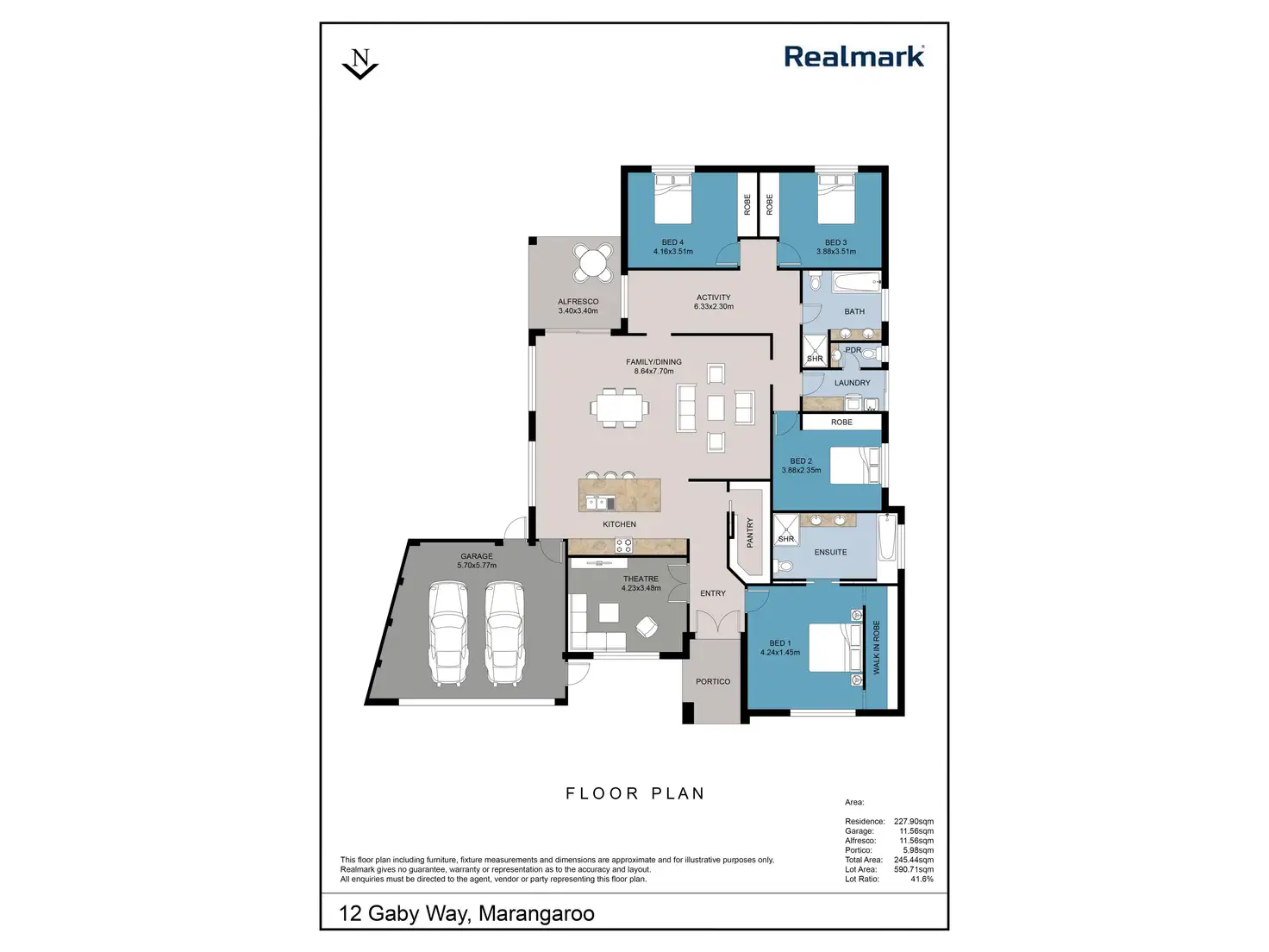 Living areas include a separate home theatre/media room and an expansive open plan living and dining with a stunning gourmet kitchen at the hub, all flowing out to perfect undercover outdoor entertaining amongst lush gardens and no lawn.