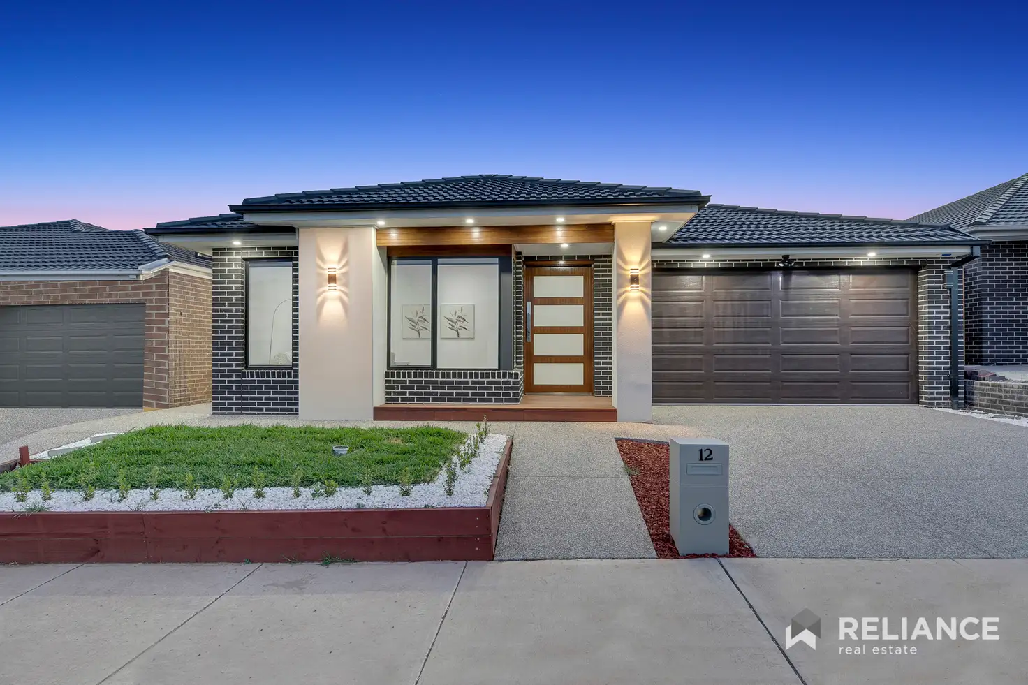 The front landscaping features an elevated garden bed with beautiful natural grass reflecting a modern easy on the eye look while being low maintenance for those on the go!