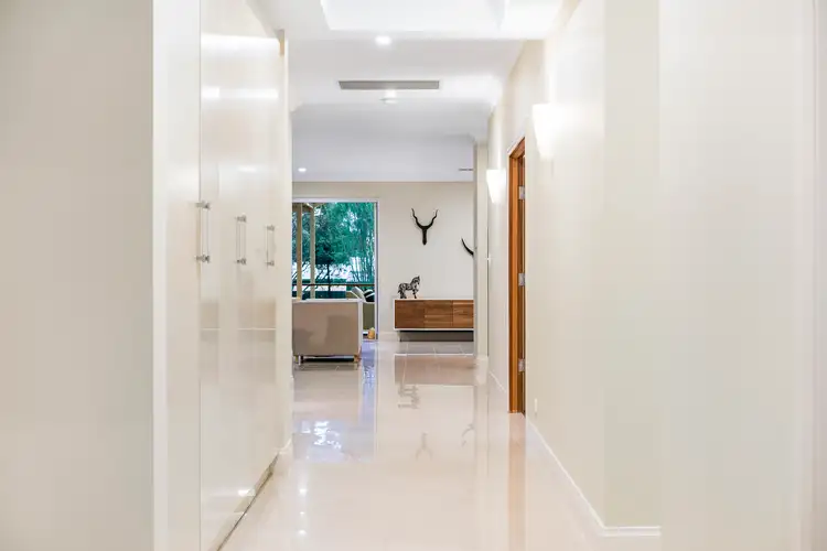 A walk-in pantry, stainless caterer's oven and bench space galore recruits its stone-topped pledge as platter and prep heaven while a swivel of any island bench bar stool gives a social glance to a crowd-worthy dining zone and living room relaxation.