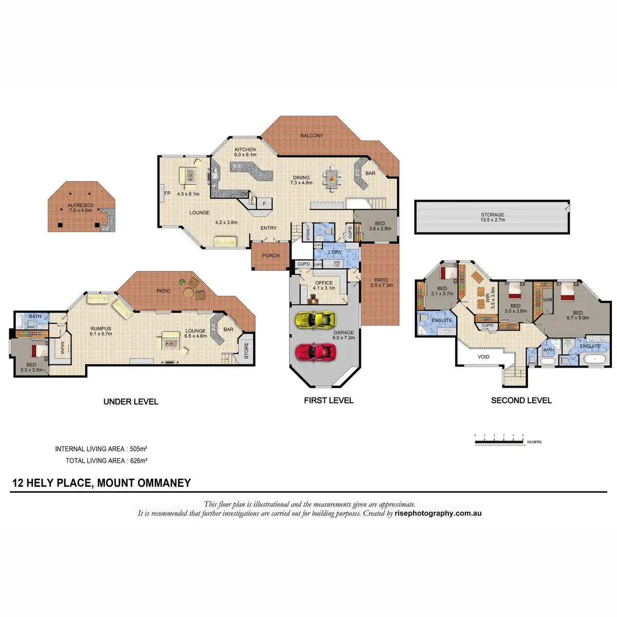 - 5 Bedrooms, including 2 with ensuites and walk-in robes