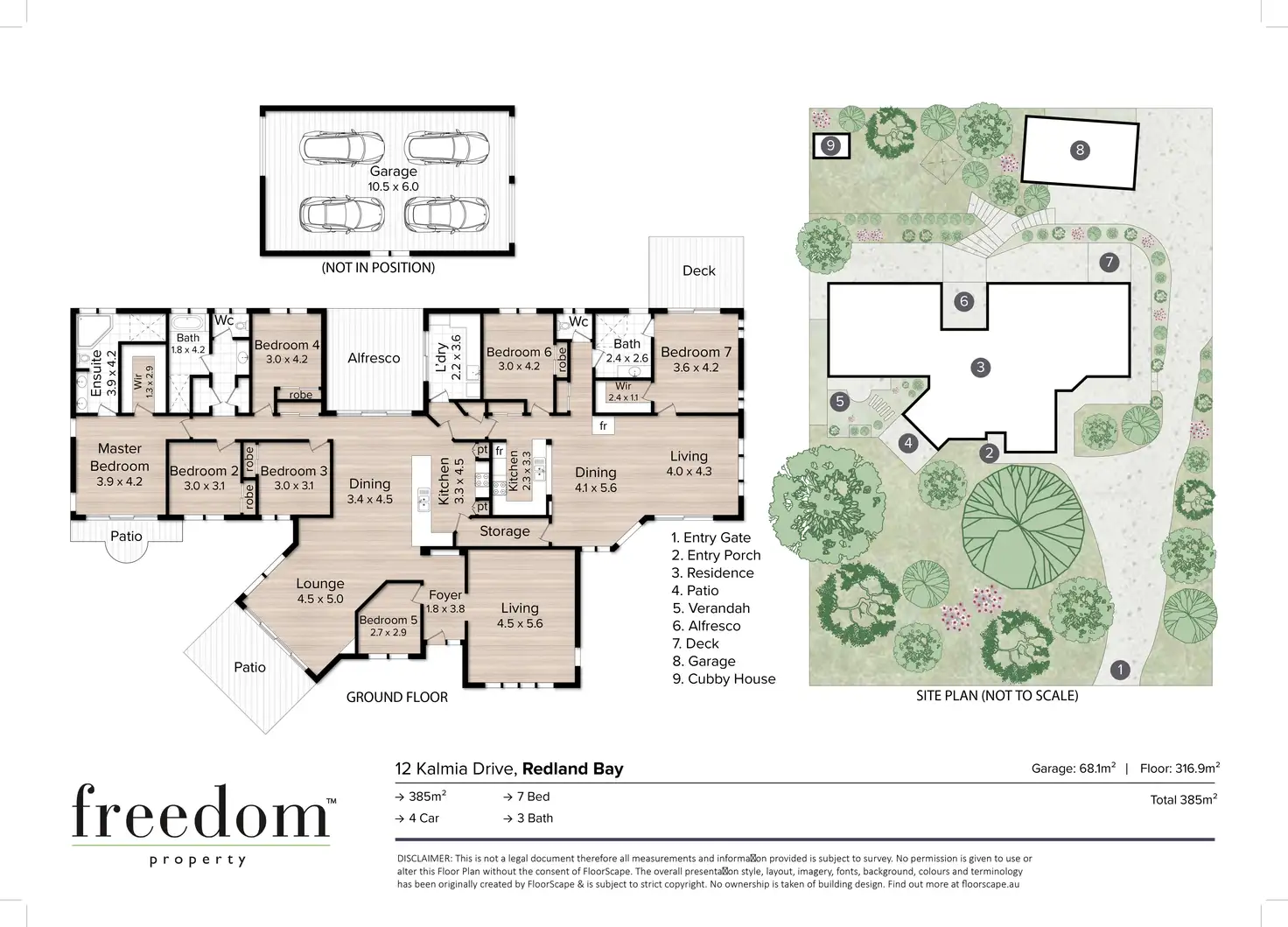 Main Residence: 5 Bedrooms, 2 Bathrooms, 4 car accommodation