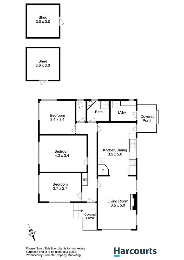 3 Bed • 1 Bath • 2 Car • 559m²