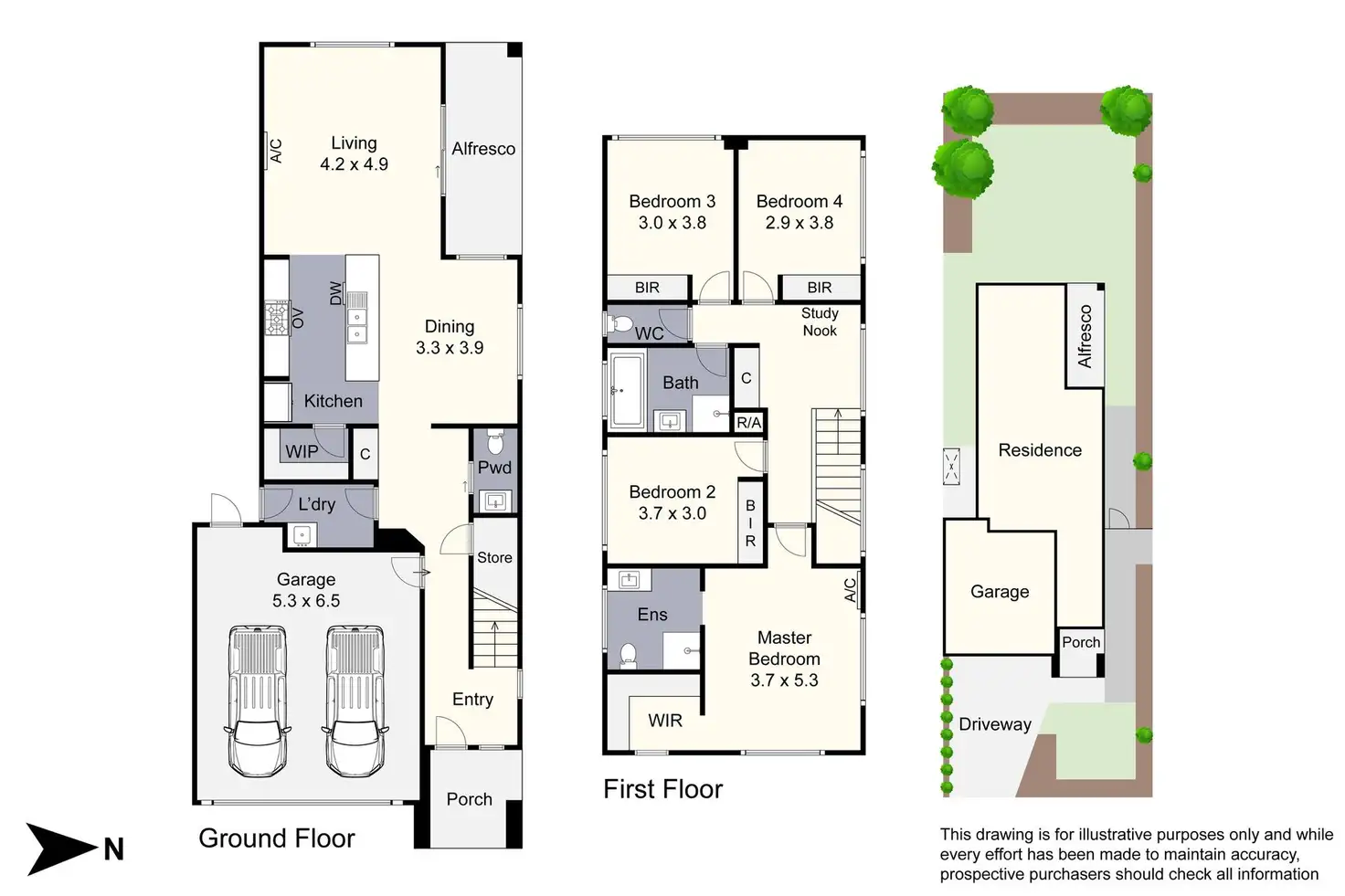 • Four bedrooms, open plan living and dining, upper floor study nook