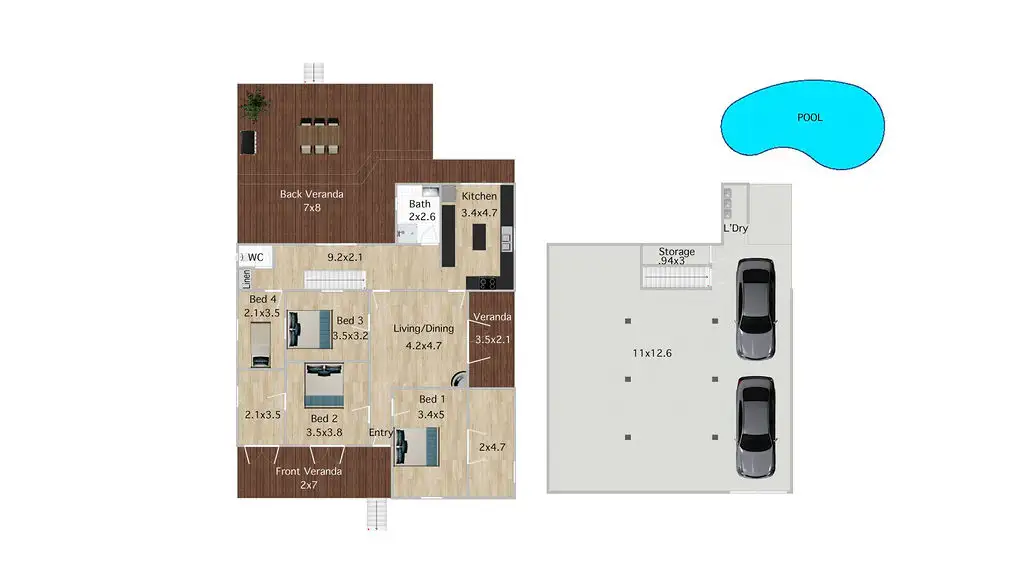 4 Bed • 1 Bath • 2 Car • 642m²