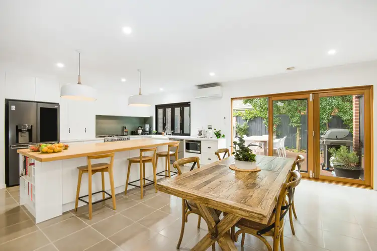 • Light filled dual living areas take full advantage of the enviable north/easterly orientation; dual timber bi fold doors create a seamless connection to an expansive decked alfresco zone – truly a fine example of inside/outside living! The boundary is flanked by established ornamental pears which offers a truly tranquil and private setting