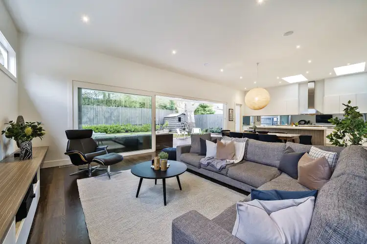 Framed by rows of double-glazed, sliding glass, the luxury living heads outdoors to a skylit and downlit undercover timber deck with the convenience of overhead strip heating. Perfectly placed beside a lush, private yard anchored by a majestic oak tree, alfresco entertaining will become second nature with the capacity to stage substantial lounge and dining settings under shelter and shade.