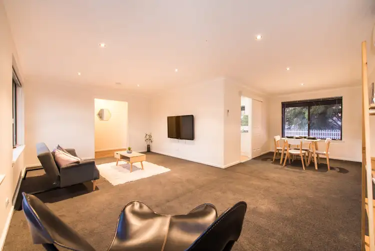 As you enter the home you are greeted with a spacious, open plan lounge/dining area. As well as two front-facing windows, this area is serviced by a split system air-conditioning unit and access to the kitchen; perfect for entertaining family and friends. Directly behind this is the kitchen which leads on to an additional living area. The kitchen in particular is certainly impressive with quality white cabinetry, laminate flooring and glossy white wall tiles. Storage is no issue whatsoever as the kitchen features ample bench space, a great number of cupboards and a generous pantry. This section of the home leads out through a glass sliding door to the outdoor entertaining space.