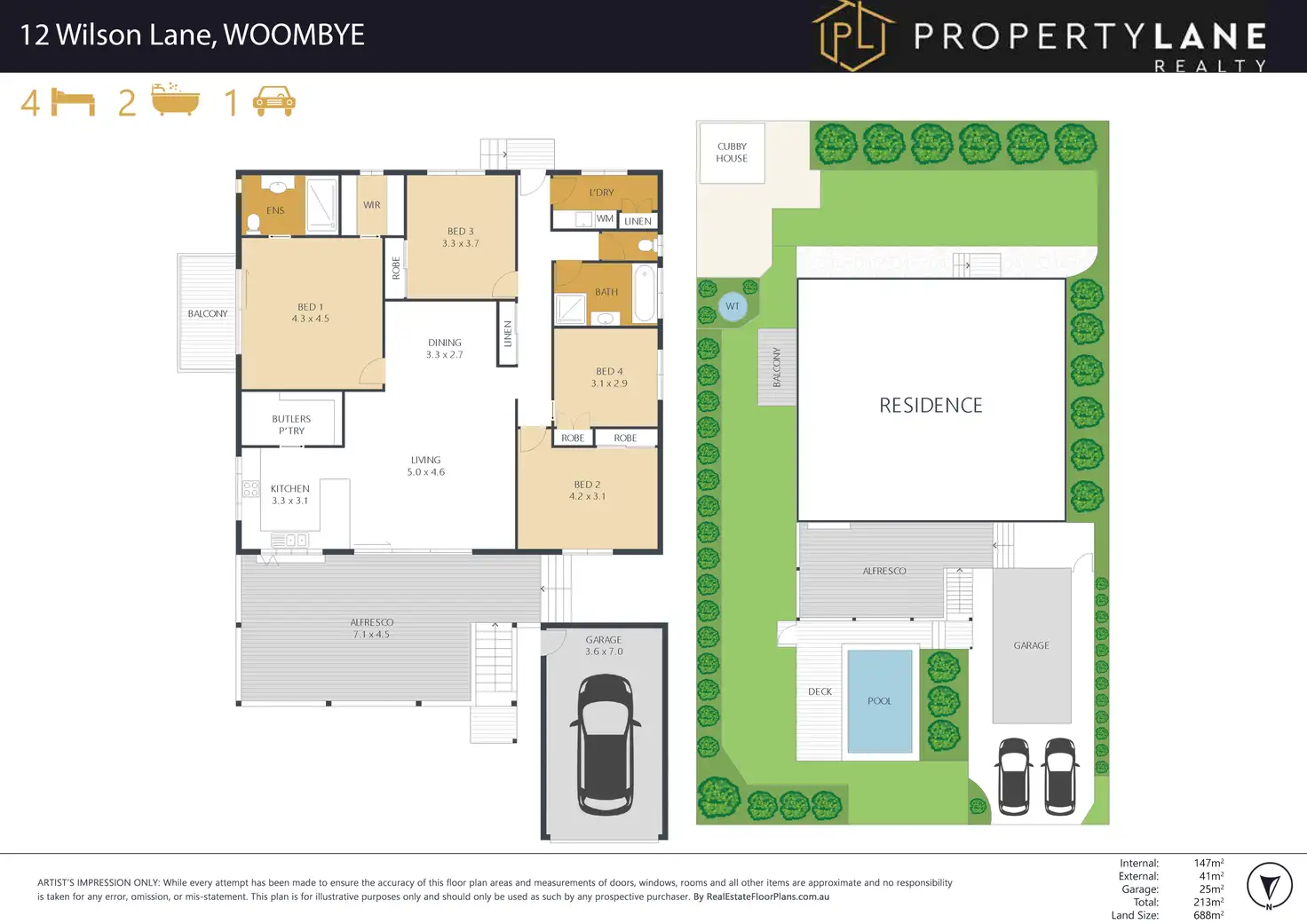 4 Bed • 2 Bath • 1 Car • 688m²