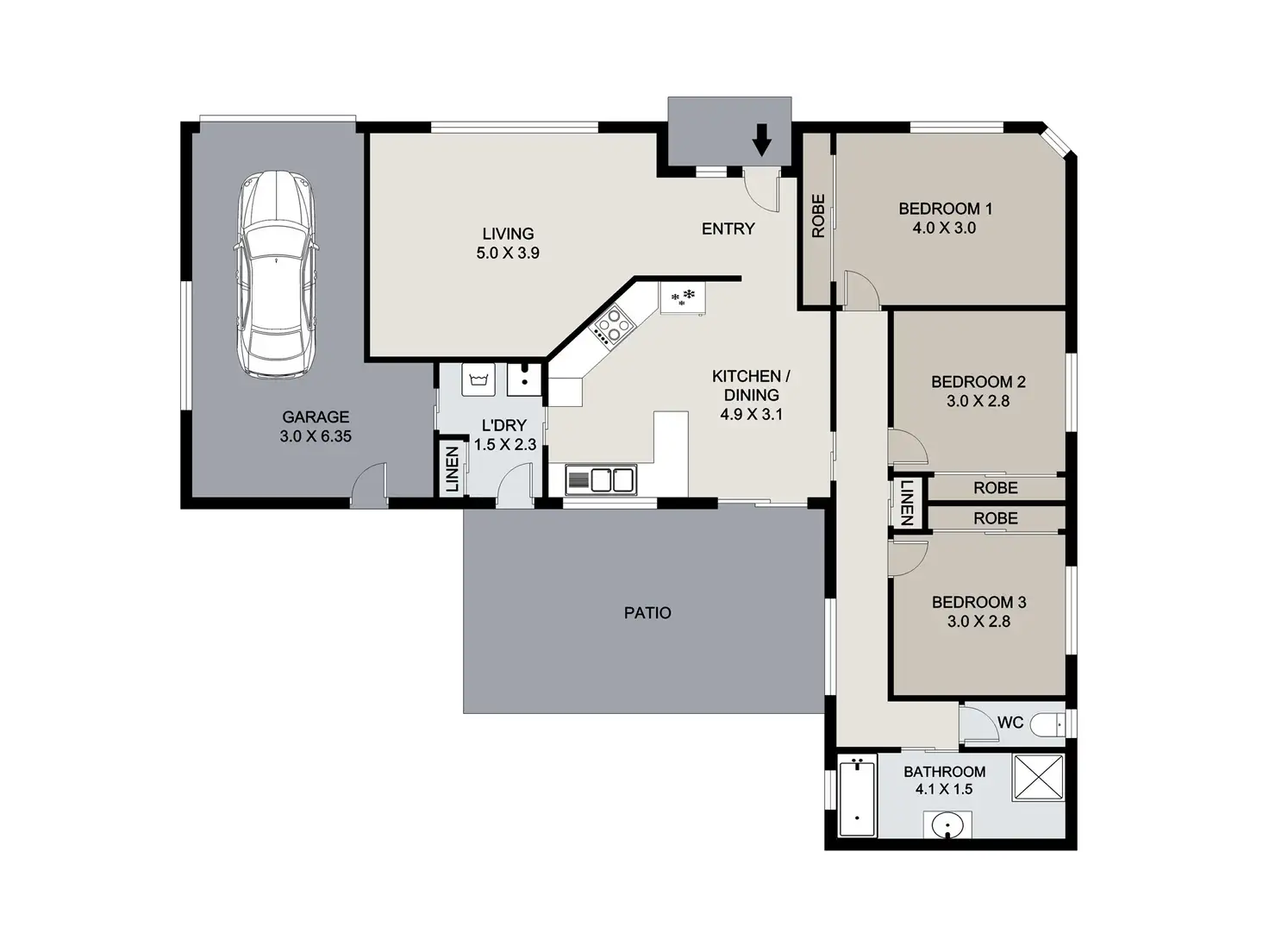3 Bed • 1 Bath • 1 Car • 442m²