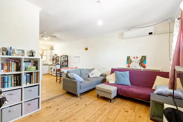 As you step inside, you're greeted by an inviting open-plan living area with beautiful wooden floors, creating a warm and natural ambiance. The space is equipped with a split system air conditioner and a ceiling fan, ensuring year-round comfort, no matter the season.