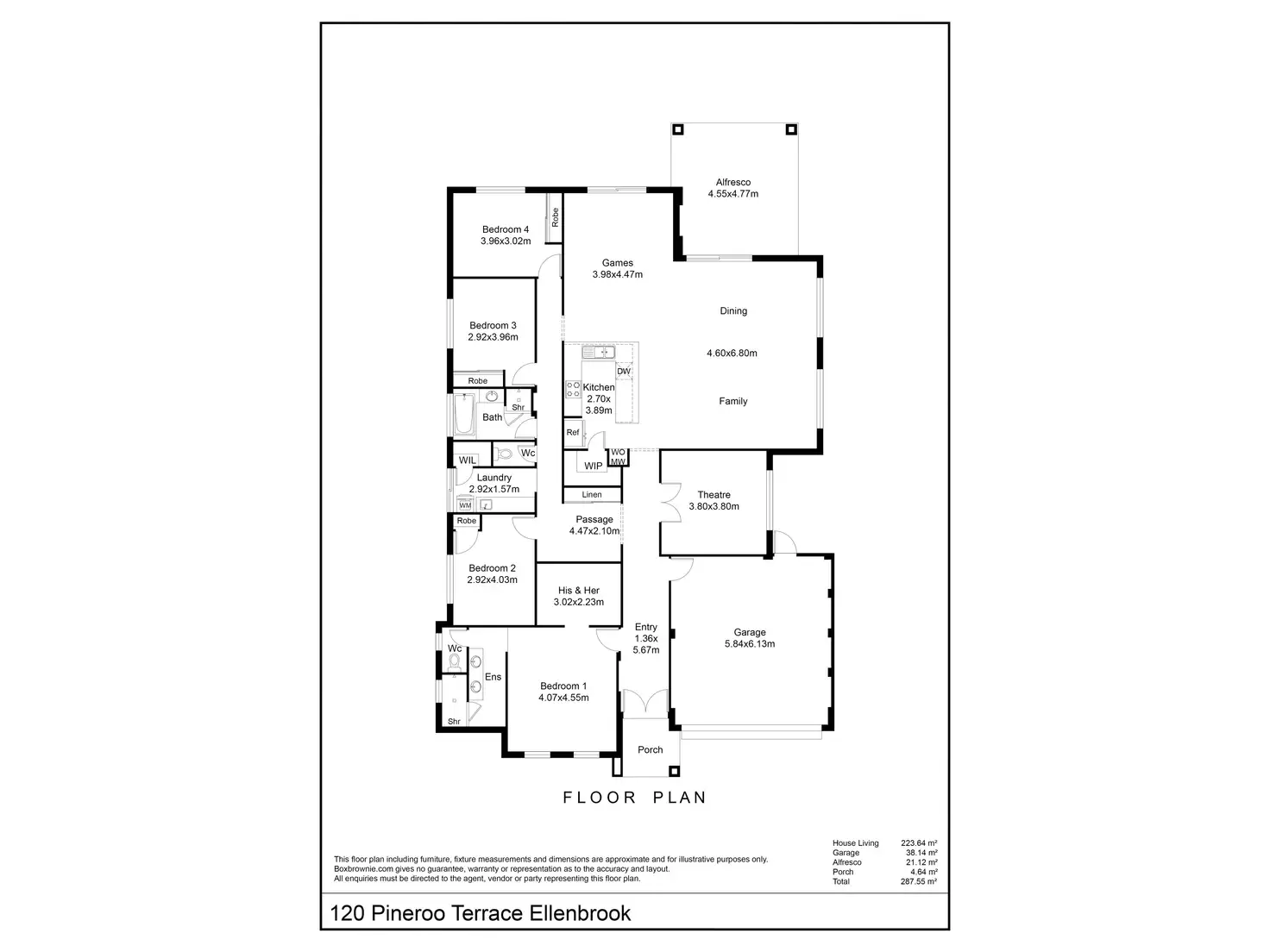 4 generous sized bedrooms, 2 bathrooms, theatre, huge family, kitchen, dining, games, alfresco, double gates for potential side access