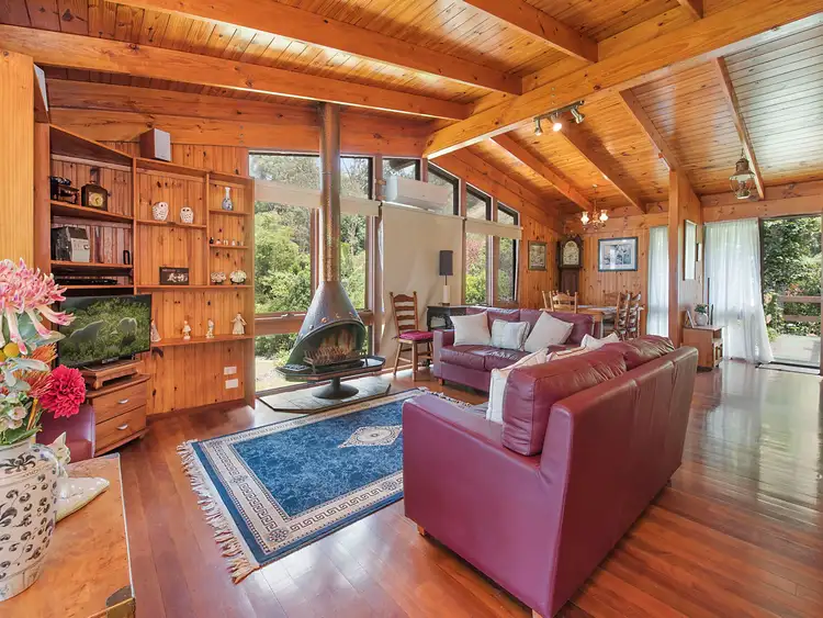 Timber floors, timber lined raked ceilings, fireplace, abundance of glass to invite in light and frame outlook, and a natural spring with old pumphouse, are some of the features that are endearing and delightful'as is', the home would make a fabulous weekender for the city dweller - with plenty of rustic charm and appeal, it is cosy and full of warmth.