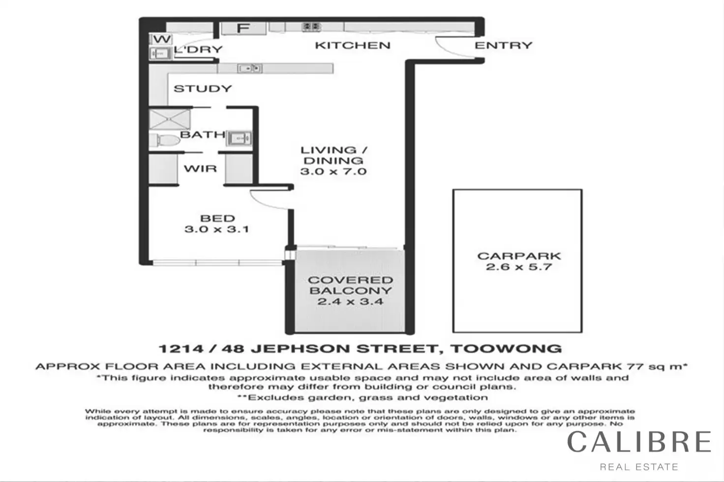 1 Bed • 1 Bath • 1 Car • 77m²