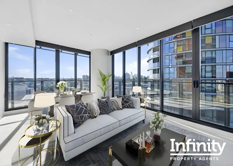 Showcasing the epitome of luxury design & urban living, "Infinity" is an award-winning, architectural landmark designed by world re-known Koichi Takada. Set above a large expanse of bustling retail & restaurant space, this luxury two-bedroom apartment is positioned in the heart of Green Square, above the Train station and with major bus routes, a library , a Woolworths & more, directly at your doorstep.